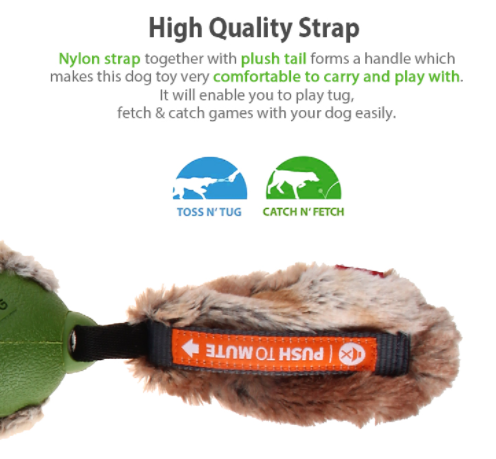 -GiGwi Push to Mute chuyển đổi giữa đồ chơi có tiếng kêu hoặc chế độ yến tĩnh, giúp chú cún thoải mái cắn nhai mà không gây ra sự ồn ào. Hoặc khi tương tác với chủ chũng ta có thể ấn đuôi dây đeo vào để tạo âm thanh kích thích ham muốn chinh phục của thú cưng